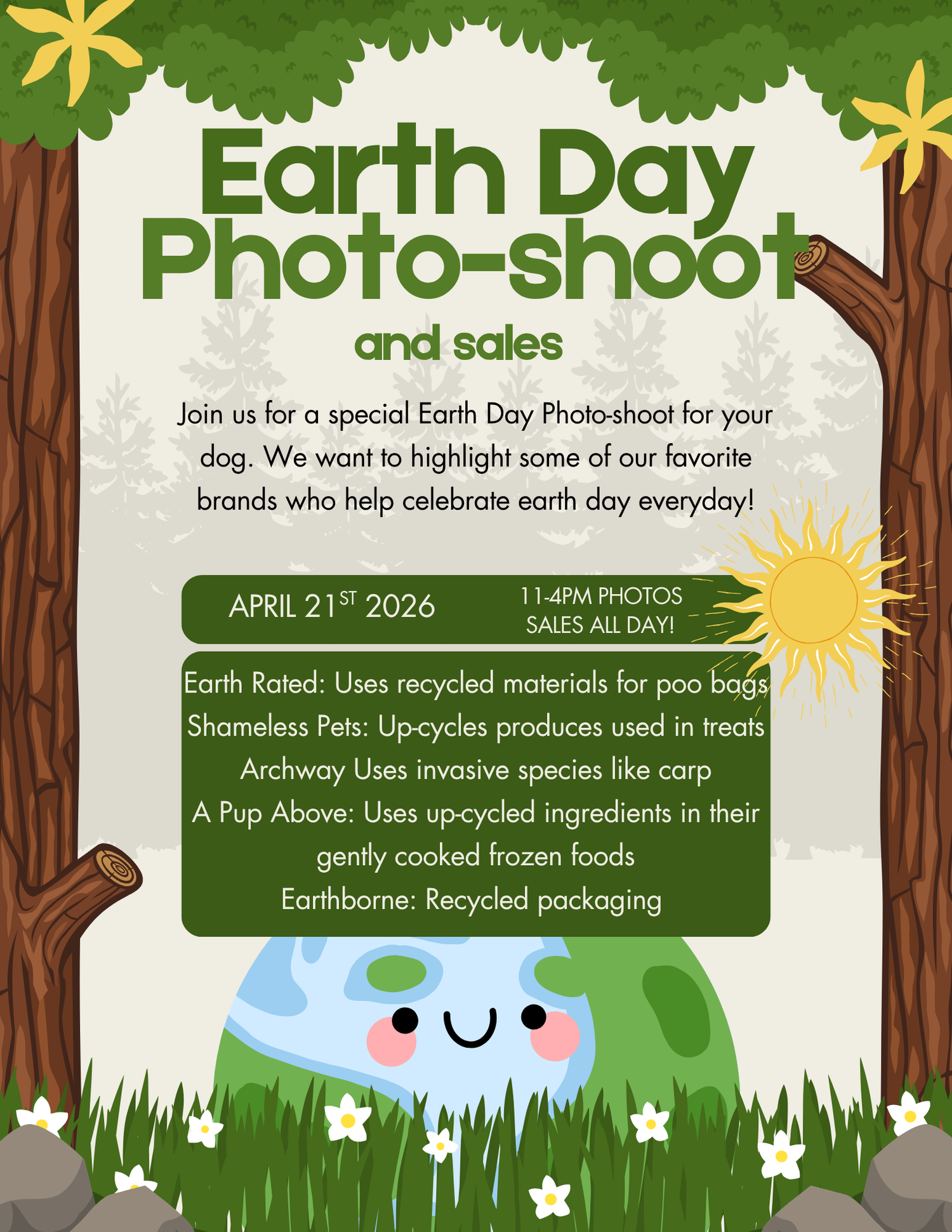 We’re hosting a special Earth Day Pet Photo Shoot + Eco-Friendly Sale to