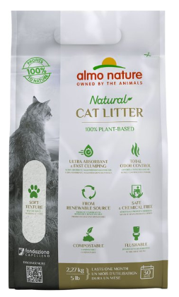 Help stop stink the natural way with Almo Nature Cat Litter. This all-natural, ultra-absorbent kitty litter is made from vegetable fibers, which means it’s biodegradable, compostable and flushable! The starch from the vegetable fibers creates fast clumping action, separating used litter from clean litter, while the plant enzymes help to neutralize odors, so your nose and your cat’s nose don’t have to suffer. And you'll be happy to know that it's also completely free of chemicals, additives and toxic agents for a litter you can trust!
