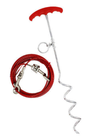 The Boss Pet Products Dog Stake & Tie Out Combo is perfect for large dogs up to 60 pounds. It features an easy grip T-handle and it allows up to 360 degree rotation without tangles. This Boss Pet Products Dog Stake & Tie Out Combo consists of a 20' vinyl coated cable that is medium weight and weather-resistant.