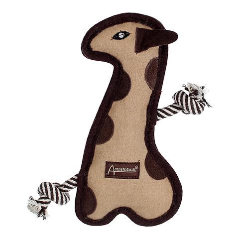 Aussie Naturals Tuff Mutts are fun and durable chew toys made with natural wool, cotton rope and crunchy coconut fiber filling. The Tuff Mutt Giraffe is constructed with 4 layers for extra strength that gives long lasting play and entertainment for your pet. Tuff Mutt dog toys also include a squeaker inside for added enjoyment.