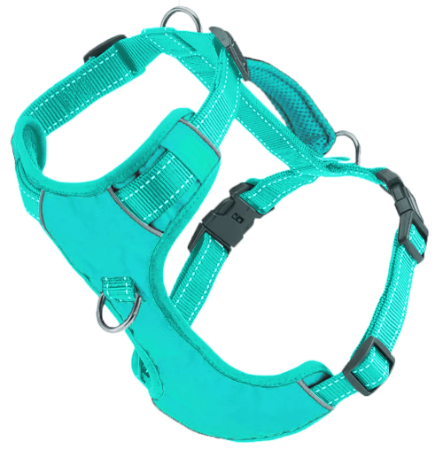 Our Chesapeake Dog Harness is a premium Dog Harness For Comfort and Control. It features a padded traffic handle, cushioned breastplate, 3 leash attachment points, reflective stitching, and easy adjustability. This is the best dog harness to keep your dog walking happily by your side!
