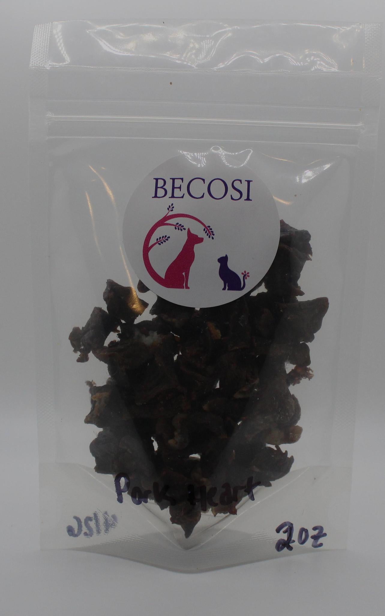 Dehydrated Pork Hearts that are safe for dogs and cats alike.