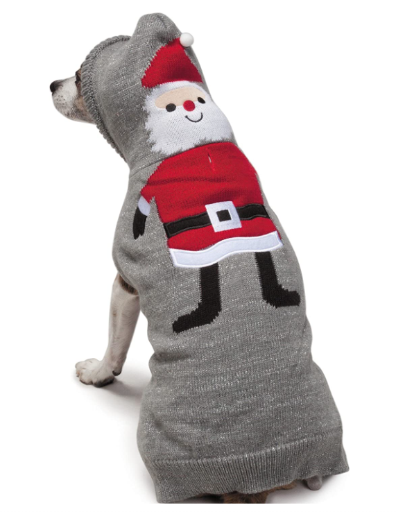 • Pet sweaters woven with silver metallic thread to catch the light for holiday sparkle