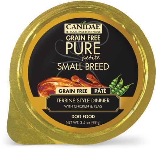 Our CANIDAE® Grain Free PURE Petite wet formulas use simple, limited ingredient recipes for sensitive small dogs. Your pampered pooch will enjoy choosing from a menu of deliciously prepared dishes. And you'll enjoy indulging your petite companion knowing that each portion is filled with great tasting, premium nutrition.