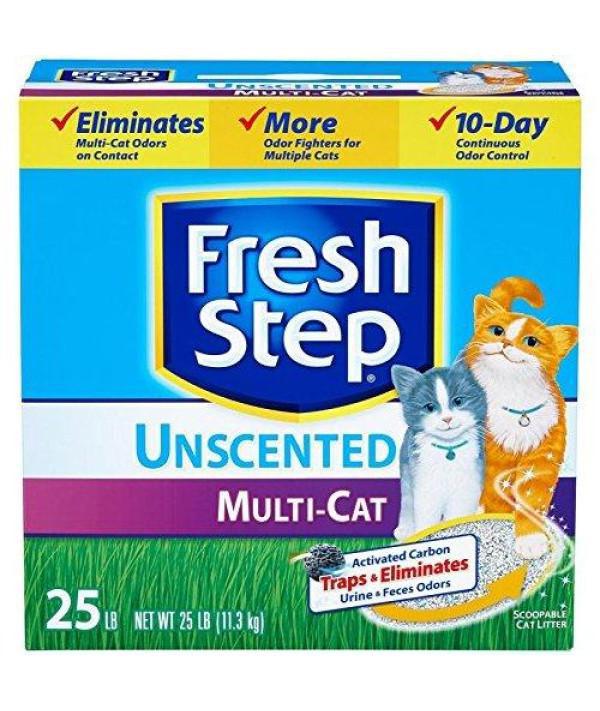 This unscented litter is strong enough for multiple cat households, but doesn't have any perfumes or dyes. With Fresh Step® Multi-Cat Unscented Scoopable litter, you'll have a litter box so fresh, it's like not having one at all.