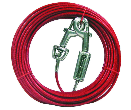 Pet tie outs for large dogs up to 60 # lgth 15 feet Vinyl coated cable. Color coded weight rated packaging. Designed with durability for outdoor use. Vinyl coated cable. Color coded weight rated packaging. Designed with durability for outdoor use.