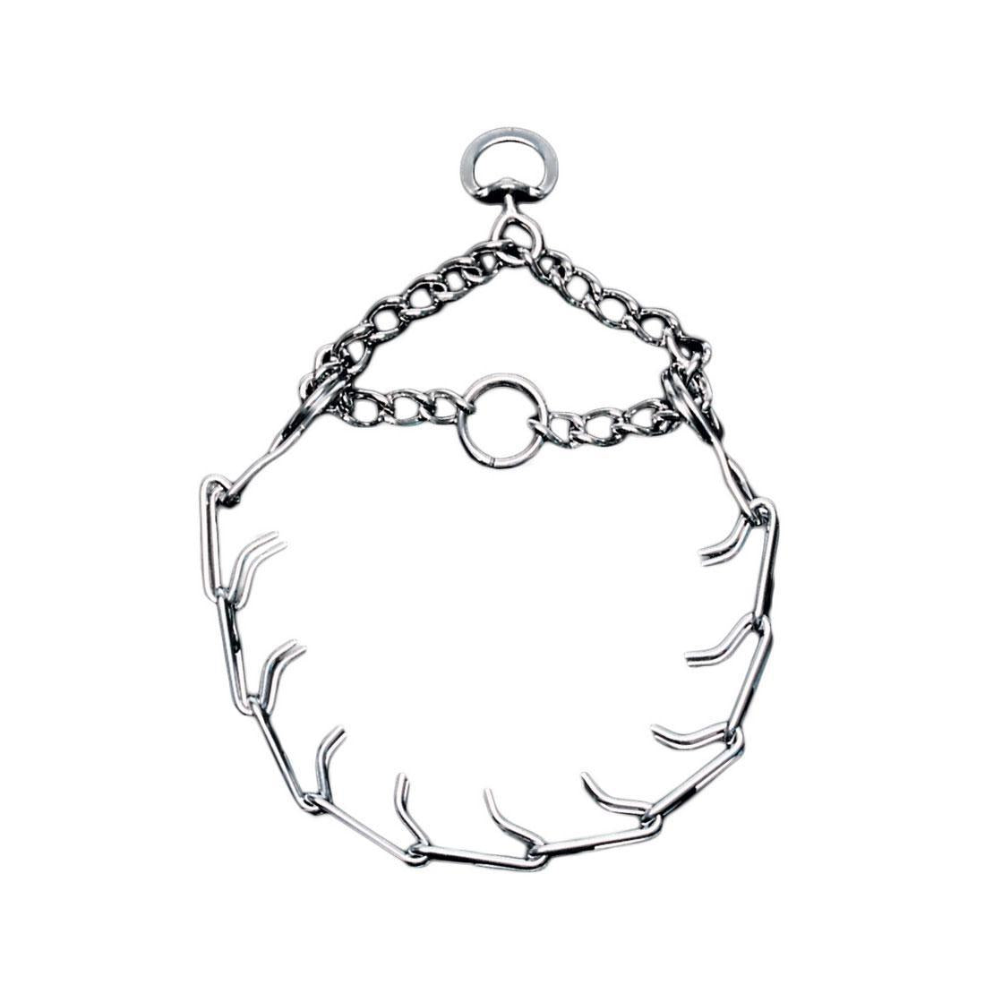 The Titan Training Prong Collar is electric welded and chrome plated for maximum strength and durability. It will not tarnish, rust or break. Featuring a link closure style, prong links unfasten for easy collar placement and removal. Extra links and vinyl comfort tips are available. Available in 2.0 mm x 14", 3.0mm x 18", 3.3 mm x 20" and 4.0 mm x 22". Chain training prong collars are safe, effective training tools with proper use. They are not to be used for tie out.