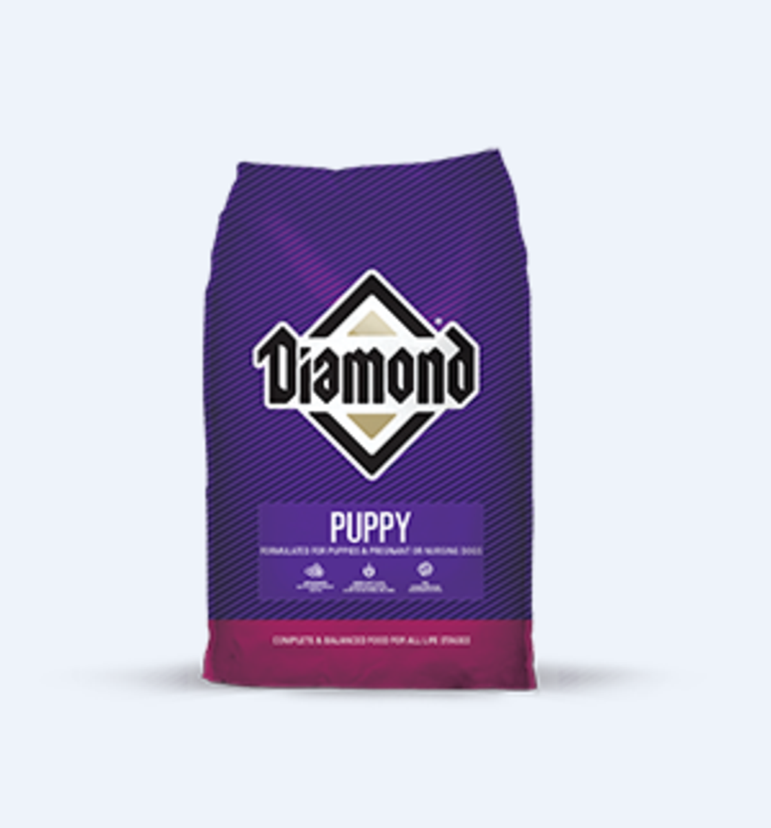 Diamond Puppy Formula is formulated to meet the nutritional levels established by the AAFCO Dog Food Nutrient Profiles for puppies. The nutrition your puppy receives in the first year can influence overall health later in life. Diamond Puppy Formula is precisely formulated to meet the special nutritional needs of rapidly growing puppies. Enhanced with DHA for proper brain and vision development, this formula is also formulated with omega fatty acids, antioxidants, and proper levels of protein and fat, to help your puppy grow up strong. This formula is also ideal for pregnant or nursing adult dogs.