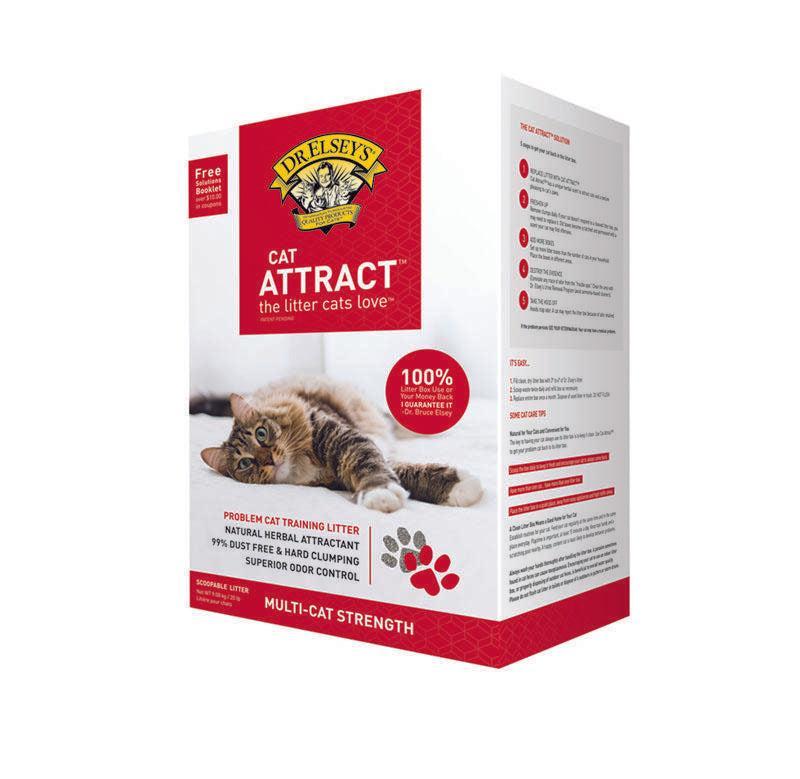 Cat Attract® provides a solution for cat owners whose cats do not use their litter box. Blended with a natural herb attractant, the ideal texture and particle size combine to solve litter box problems. Each bag has a free Litter Box Solutions Booklet to help cat owners solve their litter box problems.