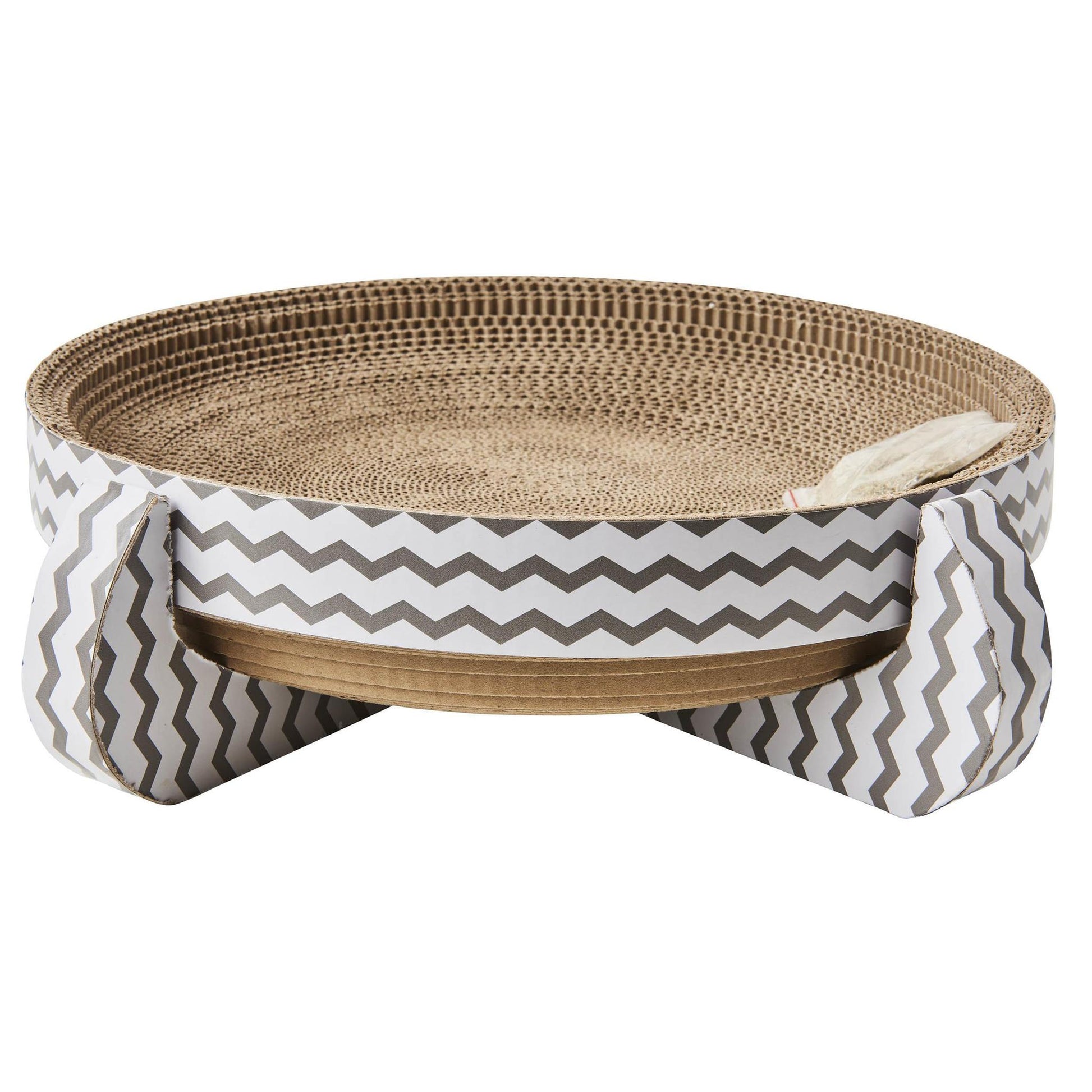 Corrugated board scratcher. Helps keep nails trimmed and healthy. Deters cats from scratching furniture. Includes catnip/silver vine mix.