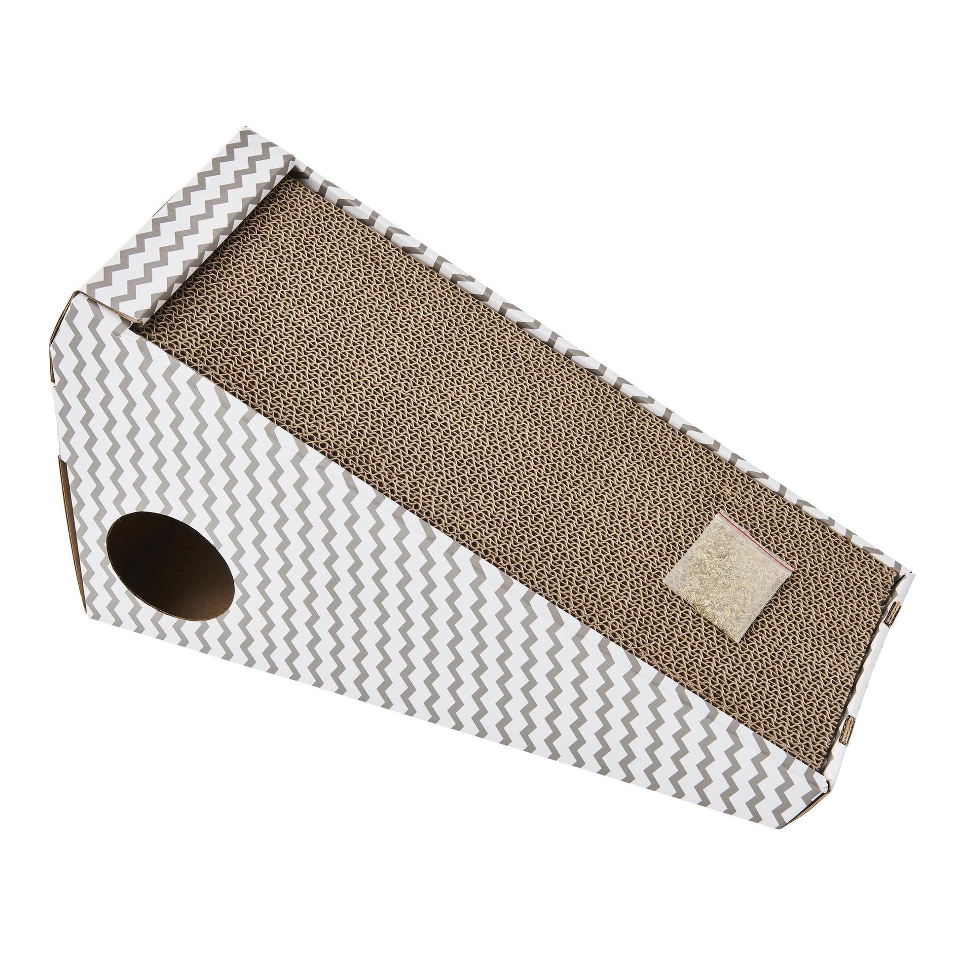 Corrugated board scratcher. Helps keep nails trimmed and healthy. Deters cats from scratching furniture. Includes catnip/silver vine mix.