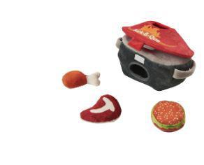 Let your dog put his brain to work with the Spot Grill Time Puzzle. A soft, whimsical, crinkly, plush puzzle hides 3 squeaky surprise pieces for your dog to dig in and sniff out. Plush hide & seek challenge for a rewarding, interactive time.