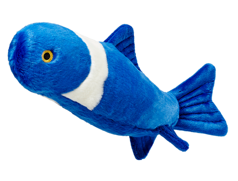 Gil is one of the most popular fish in the pond, mainly because he loves all types of play. His bold color, separately sewn on fins and two squeakers make him extra entertaining. Plus, he’s perfectly shaped to be a post playtime pillow.