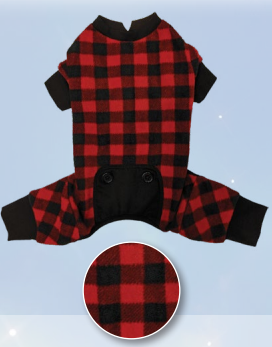 Cozy polyester fleece PJ in buffalo plaid print with matching rib trim.