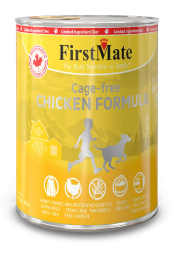 FirstMate’s Chicken formula uses whole, free-run Chicken. This Grain Free, limited ingredient diet is ideal for maintenance feeding or for those with food sensitivities. It is nutritionally compete but should you decide, feeding it along with FirstMate dry formulas can be complementary.