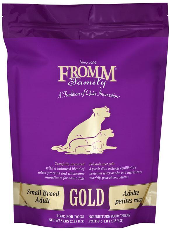 Developed for the metabolism of small breed adult dogs. Tastefully prepared with select proteins and wholesome ingredients. Enhanced with probiotics to aid digestion and salmon oil for a healthy coat. Fromm Family Small Breed Adult Gold Food for Dogs is formulated to meet the nutritional levels established by the AAFCO Dog Food Nutrient Profiles for growth and maintenance, including growth of large size dogs (70 lbs. or more as an adult).