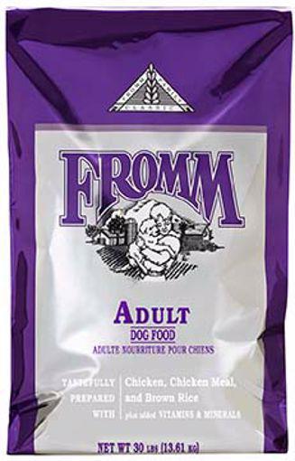 Fromm Classic Adult is made with chicken as the first ingredient and contains an optimal combination of high quality proteins, essential fatty acids, fully cooked carbohydrates, and essential vitamins and minerals. Fromm Family Foods is a fifth generation family-owned-and-operated artisan pet food company. Produced at Fromm's hands-on family-owned-and-operated facility. High nutrient digestibility and utilization. Third party pathogenic bacteria testing on all production batches. Fromm's specially developed blend of probiotics. Probiotics can help support intestinal health by regulating and balancing gut microbiota, supporting immune system function, and enhancing nutrient metabolism.
