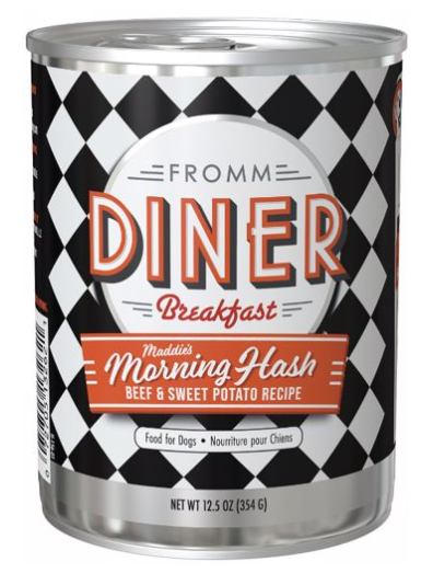 Wake up your dog's taste buds with FROMM Diner Breakfast Morning Hash Stew. This delectable canned dog food features a hearty blend of finely minced beef, potatoes, and various vegetables. Crafted with care, this stew offers a highly palatable and nutritious meal that is sure to delight your furry companion.