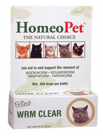 • HomeoPet Cat WRM Clear is a natural solution designed to help remove worms in cats. Formulated with a gentle, non-toxic approach, it targets a variety of worms while being safe for your feline friend. This product can be used for cats of all ages and can contribute to their overall well-being.