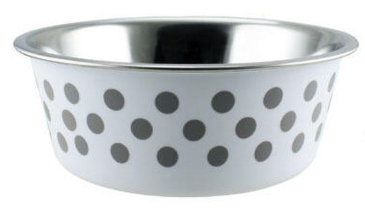The Indipets Polka Dot Buster Bowl is the perfect mix of function and style! This stainless steel bowl features a fashionable outer covering and a non-slip base.