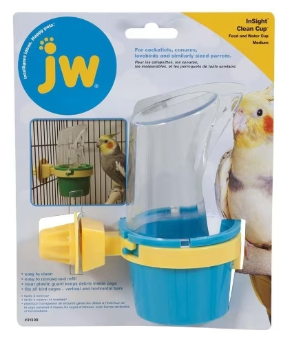 • Extended cup to keep food inside and prevent messes outside of the cage.