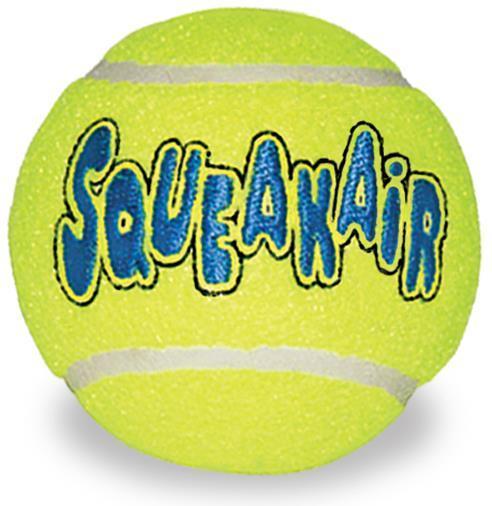 The KONG AirDog Squeakair Ball combines two classic dog toys — the tennis ball and the squeaker toy — to create the perfect fetch toy. Our durable, high-quality Squeakair Ball will not wear down your dog's teeth. It's made with a special non-abrasive felt, compared to the abrasive material on normal tennis balls.