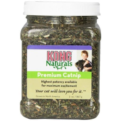 KONG Naturals Premium Catnip is North American grown catnip of the highest quality. KONG catnip is harvested at the peak of its flavor, color and fragrance and field-dried. KONG's premium leaf and flower cut gives you minimal stems and seeds and more of the essential oils that cause a reaction in most cats. Use as a stand-alone treat or in KONG refillable catnip toys. KONG Naturals are ecologically responsible cat products. All ingredients and oils come from natural, renewable resources. These products are designed to appeal to the natural instincts of the indoor cat, providing fun with a purpose.