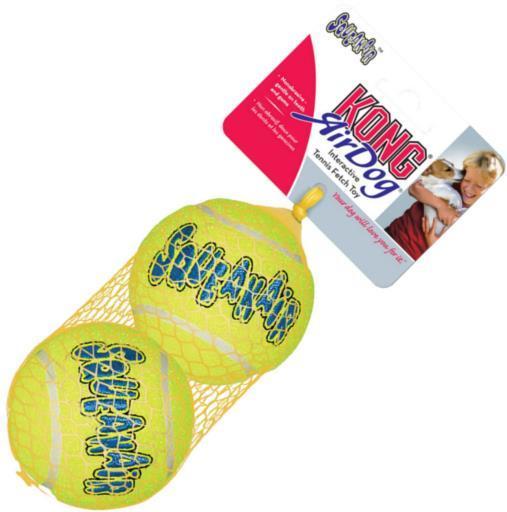 The KONG AirDog Squeakair Ball combines two classic dog toys — the tennis ball and the squeaker toy — to create the perfect fetch toy. Our durable, high-quality Squeakair Ball will not wear down your dog's teeth. It's made with a special non-abrasive felt, compared to the abrasive material on normal tennis balls.
