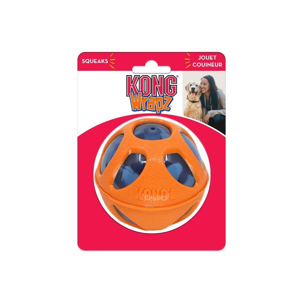 KONG Wrapz have multiple textures that deliver pure chewing and play satisfaction. Built from durable materials and featuring vibrant colors these toys are sure to provide playtime fun that lasts. The unique exterior construction provides an irresistible bounce that satisfies a dog's natural chasing instincts. Vibrant layers come together to provide a grippy texture that is ideal for catching and carrying while the toy's squeaking sounds is sure to keep dog's engaged.