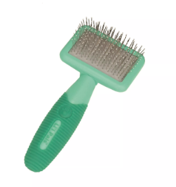 Keep your little pal looking fresh and clean with the Li'l Pals Coated Tips Dog Slicker Brush. Featuring a pad of flexible wire pins that contour to her body for efficient grooming, this brush quickly and easily detangles fur, removes loose hair and smooths the coat. Regular brushing also massages the skin to stimulate the production of natural oils and distributes them evenly for a shiny, healthy coat. At 4.9 inches in length, this little brush is scaled down to the perfect proportions for petite pups.
