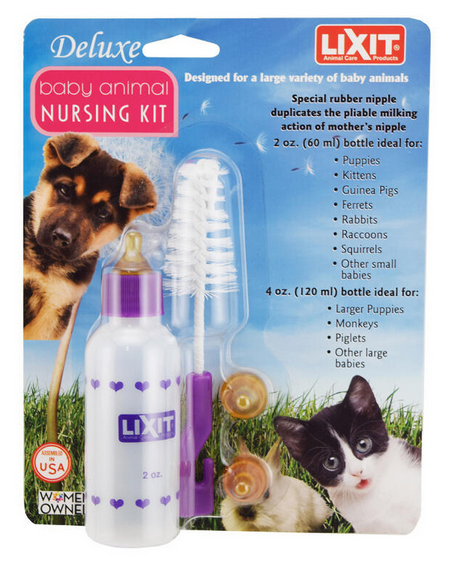 When the littlest babies in your life need quick nourishment, make sure you have the Lixit Baby Small Animal Bottle Nursing Kit nearby. With a 4-oz bottle, three rubber nipples, and a convent brush, you can feed young animals who have been orphaned, rejected, or need bottle feeding. Follow the measurements on the side of the bottle to ensure accurate feeding, while you can control the flow rate through the nipple by puncturing it yourself. When you’re finished, use the convent brush to clean your feeding tools or sterilize every piece by boiling in water.