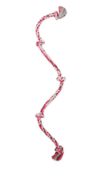 Toss, tug, and floss! Mammoth rope toys are made from premium materials in fun shapes and colors for dogs of all sizes. The denim rope fibers clean dogs' teeth as they chew and play. Rope fibers floss dog's teeth as they chew and play. Safe, long lasting great for games, fetch and play. Built strong to chew and play for hours, perfect for teething puppies.