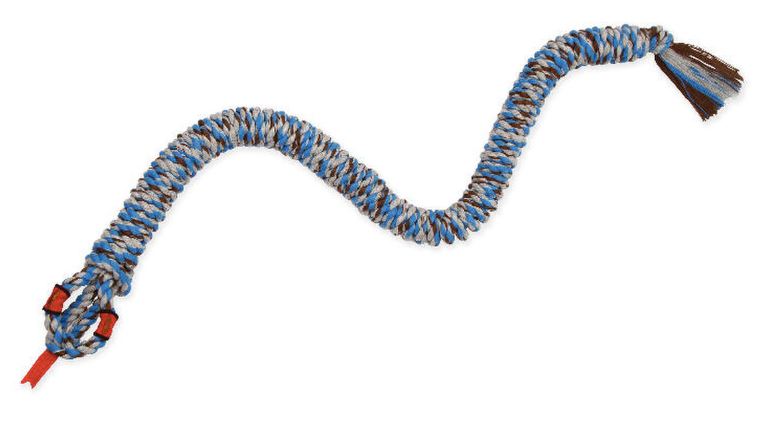 Mammoth SnakeBiters are made from premium materials in fun shapes for dogs of all sizes. The denim rope fibers clean dogs' teeth as they chew and play. Rope fibers floss dog's teeth as they chew and play. Safe, long lasting great for games, fetch and play. Built strong to chew and play for hours, perfect for teething puppies.