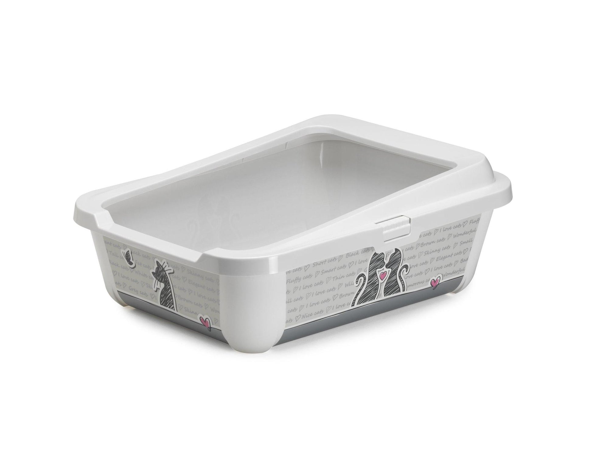 Cats Litter Trays Hercules Tray with Lid Cats In Love Large 51x39.5x19 cm Moderna The litter box is your cat's toilet and is the closest thing to how cats, in the wild, do their business. The litter satisfies their instinct to bury their droppings, so cover with litter up to about 5 cm in height. Make sure your cat has enough privacy to use its litter box. Also, place it in a ventilated place to avoid unpleasant odors. The bathroom is usually the most logical and suitable place.