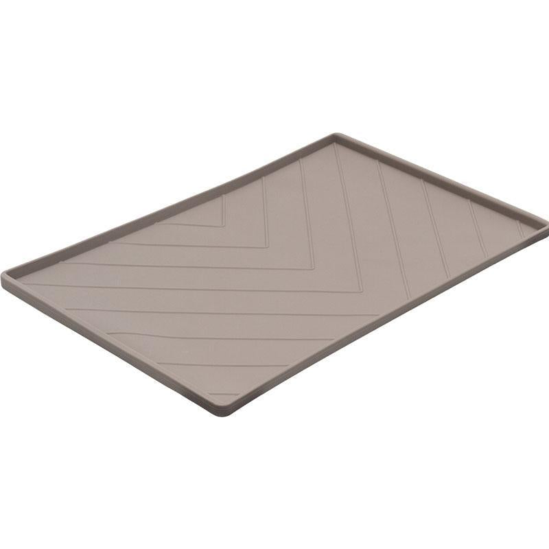 • The 0.5" raised edge will help contain the spills and the two sides with embedded steel rods make it easy to pick up and transfer any mess from the floor.