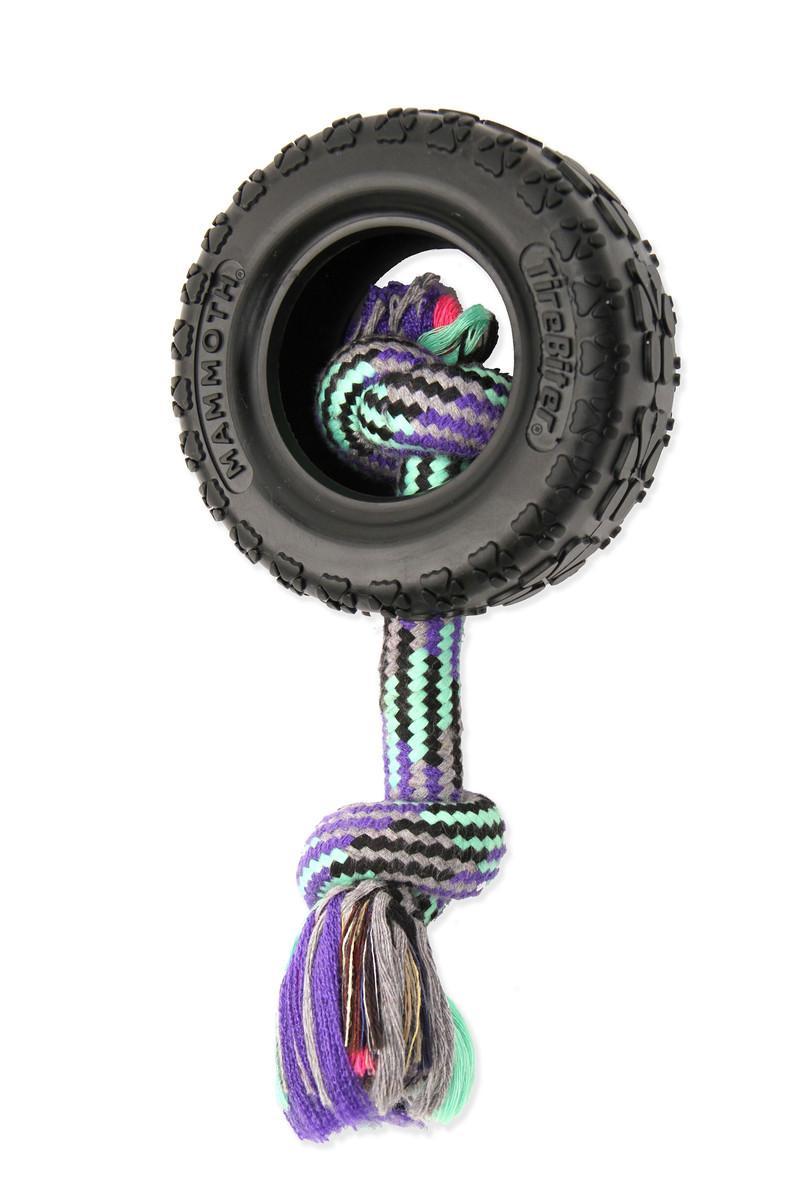 Your dog's favorite toy made better with a rope. Mammoth introduces the next generation of TireBiter toys. Made from a new advanced natural rubber formula for extra long-lasting play. TireBiter II toys are designed and developed in the USA and sustainably manufactured in our North American factory from USA materials. TireBiter II toys are made using a progressive chew system whereby as the size is made larger, the toy gains strength exponentially. Perfect for all different growth stages. Pound for pound, TireBiter ii is the toughest dog toy available. These real-tire-tough favorites are excellent for interactive play, tossing, tugging, and creating hours of positive play experience.