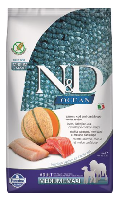 Farmina N&D Ocean Formula for Adult Dogs is a premium dry food designed to provide a balanced nutrition for adult dogs of medium and large breeds. Featuring high-quality salmon and cod, this grain-free formula ensures your pet receives the essential nutrients needed for optimal health and wellness.