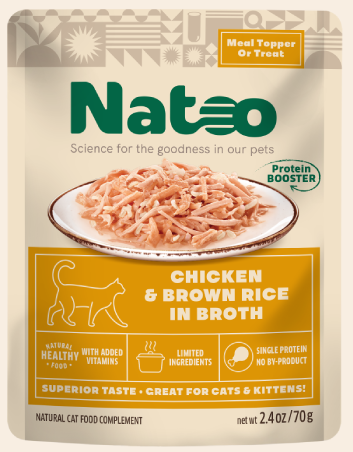 Natoo Chicken & Brown Rice in Broth is formulated with clean, healthy ingredients cats naturally crave. Perfect for cats of every size and age, this vitamin-fortified recipe features broth with an irresistible flavor.