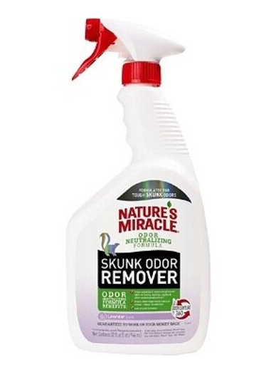 Keep your home smelling fur-esh, clean and free from unwanted smells with Nature's Miracle Lavender Scented Skunk Odor Remover! This effective odor remover helps neutralize and eliminate skunk odors from fabrics, clothing, carpets and other contaminated surfaces. It also features a re-fur-eshing lavender scent. This product is safe to use around pets in the home when used and stored as directed, but not directly on pets!