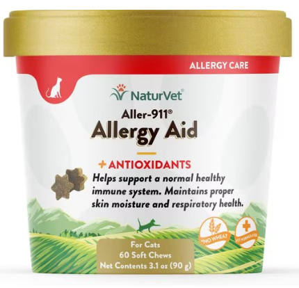 NaturVet Aller-911 Allergy Aid Plus Antioxidants provides a source of natural antioxidants to support a normal immune system and assists in combating environmental pollutants. Rich in Omegas, DHA and EPA to help maintain proper skin moisture and respiratory health.