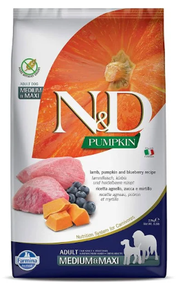 N&D Lamb, pumpkin and blueberry recipe is formulated to meet the nutritional levels established by the AAFCO Dog Food Nutrient Profiles for maintenance.