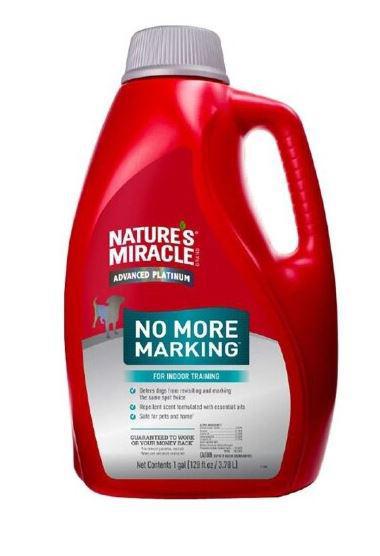 This pet stain and odor remover with the naturally repellent scent helps prevent pets from revisiting and marking the same spot twice! When sprayed on previously marked areas, Nature's Miracle® No More Marking™ Stain & Odor Remover With Natural Repellent works to eliminate existing stains and odors leaving behind lemongrass and cinnamon scents. These scents repel and help prevent dogs from returning to the area. Ideal to use when trying to break dogs' marking habits, this product will repel dogs while working to eliminate tough, deep-set urine stains and odors. Safe for use around pets and home, when used as directed.