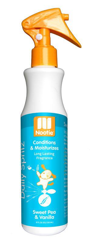 Nootie's Sweet Pea & Vanilla Daily Spritz will keep your dog smelling fresh and clean between baths while conditioning the skin and coat. Nootie's Daily Spritz is made with natural ingredients and is soap and paraben-free. It's long lasting and made with a -free, conditioning formula that does not contain any sulfates or harsh chemicals.