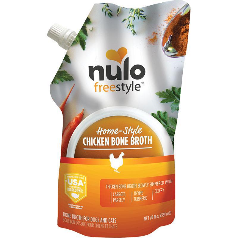 Upgrade your fur-iend’s mealtime with the lip-smacking taste of Nulo FreeStyle Grain-Free Home-Style Chicken Bone Broth Dog & Cat Topper. This wholesome bone broth transforms an ordinary meal into something special. It’s made from simmering chicken bones, extracting the nourishing protein, and adding finishing touches like basil, thyme and turmeric. Simply pour the savory broth over your feline or canine’s next meal and watch him lick the bowl clean!