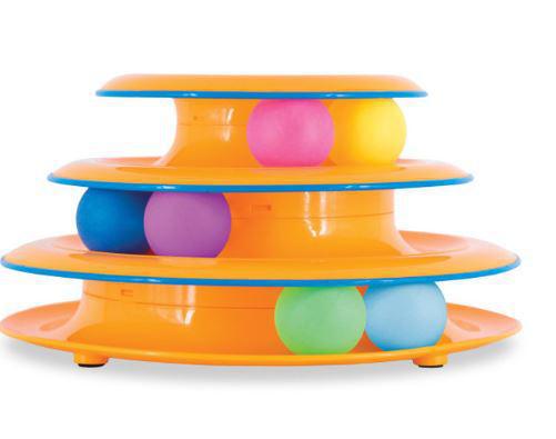 The Tower of Tracks will have your cat chasing, swatting, and batting the bright-colored balls as they race around the track! This ball track toy has three levels and six balls that spin and roll as your cat plays, engaging hunting instincts and providing the mental stimulation your cat craves. The non-slip base and sturdy construction make it ideal for energetic play and purrfect households with one or more cats. Give your cat the physical exercise they need and a fun challenge they can't resist with the Tower of Tracks.