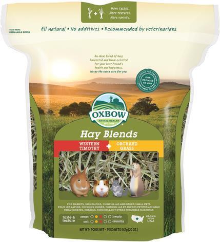 Small pets enjoy and benefit from variety in their daily diet.  That’s why we’re so excited to offer our Hay Blends.  Your pet rabbit, guinea pig or chinchilla is sure to love this enriching blend of premium Oxbow hays. We hand-select and blend Western Timothy and Orchard Grass to create the perfect blend of tastes and textures.  Your pet should have unlimited grass hay every day.