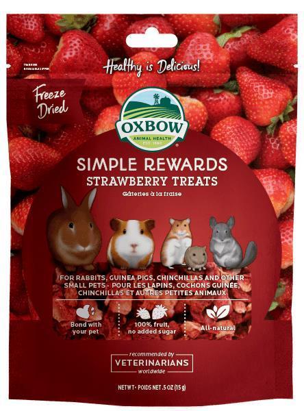 Why mess with nature’s perfection?  Oxbow’s Simple Rewards Strawberry Treats consist of only 100% strawberries, harvested and freeze-dried at the peak of ripeness to ensure the freshest, best-tasting treat for your special pet.  Rabbits, guinea pigs, chinchillas, and other small animals love these tasty treats, and you’ll love the feeling of providing a reward that contains no additives, preservatives, or added sugar.  Simple Rewards Strawberry Treats are a natural source of vitamin C and contain natural antioxidants.  Use Oxbow’s all-natural Strawberry Treats to add variety and enrichment to your pet’s diet.
