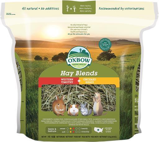 Small pets enjoy and benefit from variety in their daily diet.  That’s why we’re so excited to offer our Hay Blends.  Your pet rabbit, guinea pig or chinchilla is sure to love this enriching blend of premium Oxbow hays. We hand-select and blend Western Timothy and Orchard Grass to create the perfect blend of tastes and textures.  Your pet should have unlimited grass hay every day.