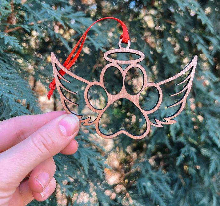 Locally Crafted, Wooded Paw Angel Christmas Ornament. Laser cut Precision