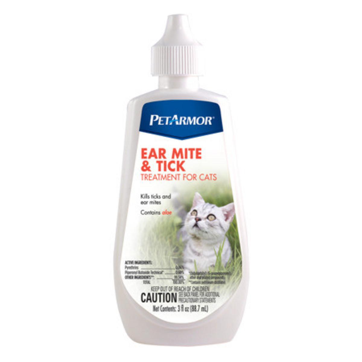 PetArmor Ear Mite & Tick Treatment for cats over 12 week of age is used as an aid in eliminating ticks and ear mites. Product contains aloe for relief from itching and the active ingredients Pyrethrins and Piperonyl Butoxide in a 3 fl oz. bottle. PetArmor® Ear Mite & Tick Treatment Cat 3oz